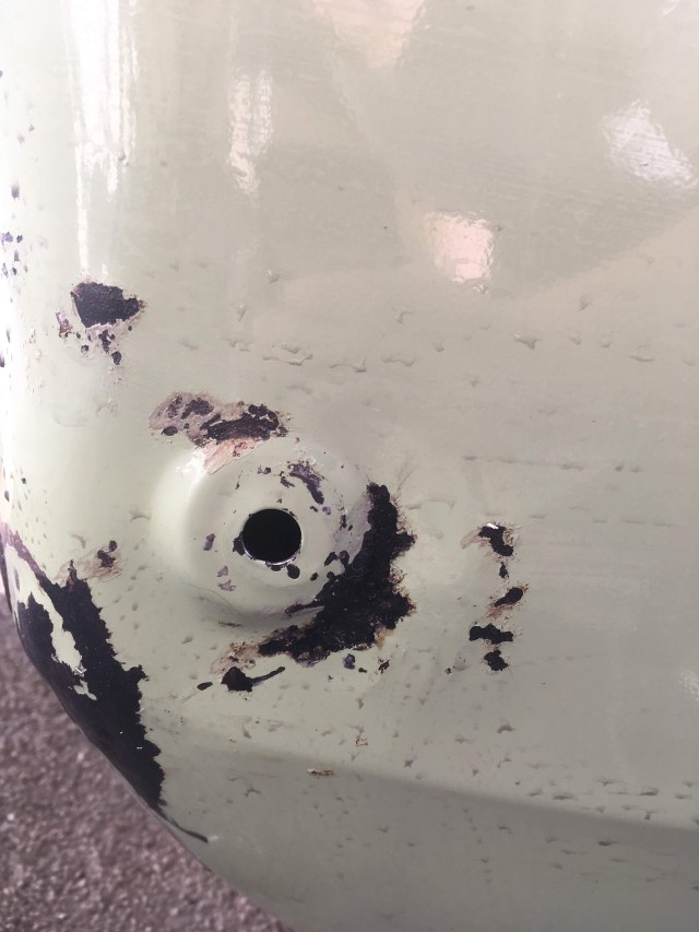 In terms of restoring classic cars, dealing with rust can be a major feature, whether it is dealing with existing rust or preventing it from forming in the first place. In my case, whilst the rusting wasn’t majorly significant, it needed work to prevent it from spreading in the future and to improve the overall look of the car. The approach I used was an anti-rust gel, which works by converting the rust into an Iron phosphate, which doesn’t spread. Whilst this new compound is black, it can act as a primer and be sprayed over. Luckily for me, the local Halfords had a can of Vauxhall Reed Green, the colour wasn’t an exact match, but was much better looking than the rust and can easily be made to match the surrounding area.